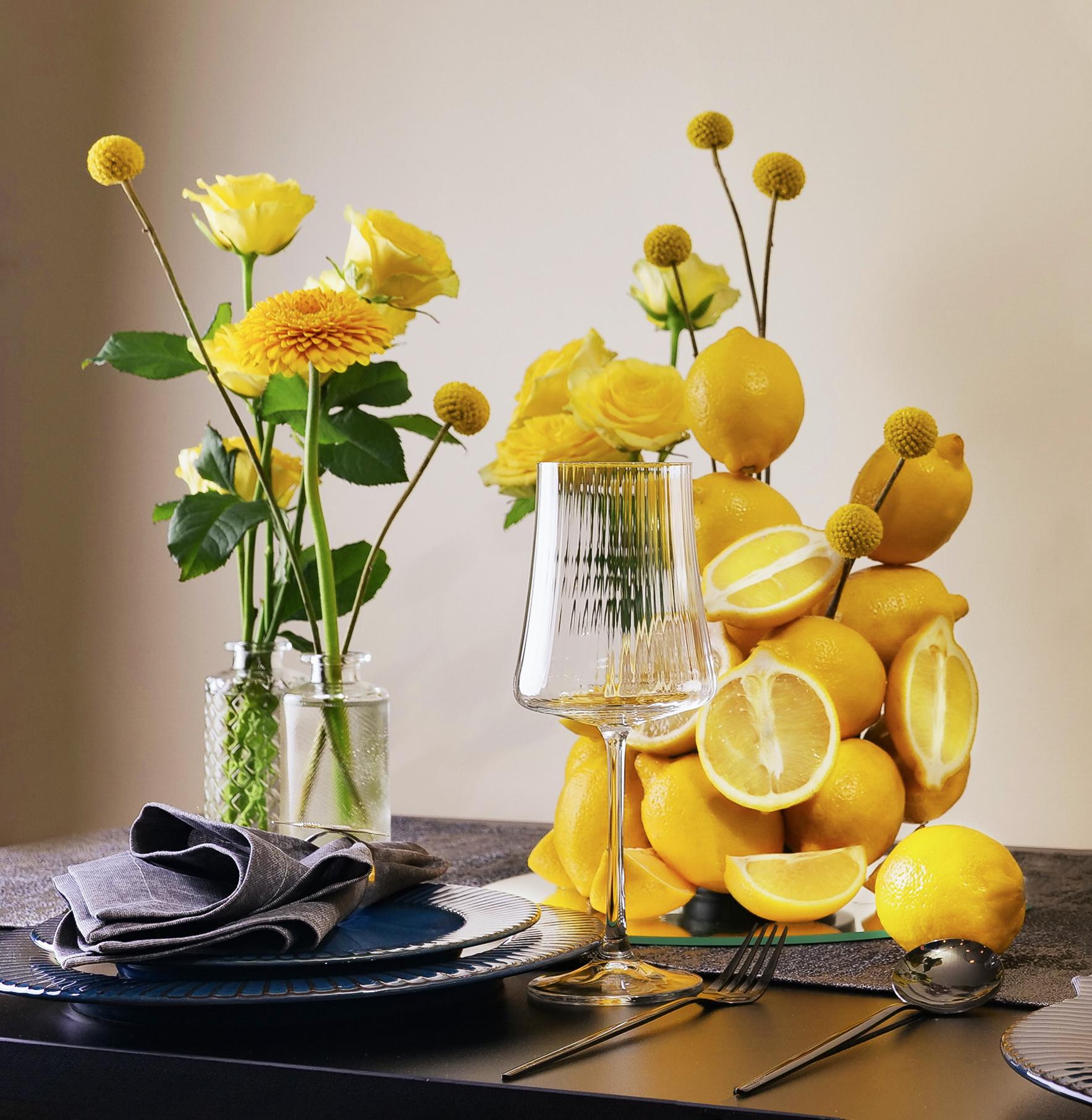 Насыщенные композиции, где сочные лимоны играют главную роль, а цветы — изящную партию. Размер композиции 100х30 см, высотой 30 см. В аренду входит: Сервировочная тканевая дорожка; Два зеркала 30х30 см; Стеклянные вазы; Восковые свечи в стеклянных подсвечниках.