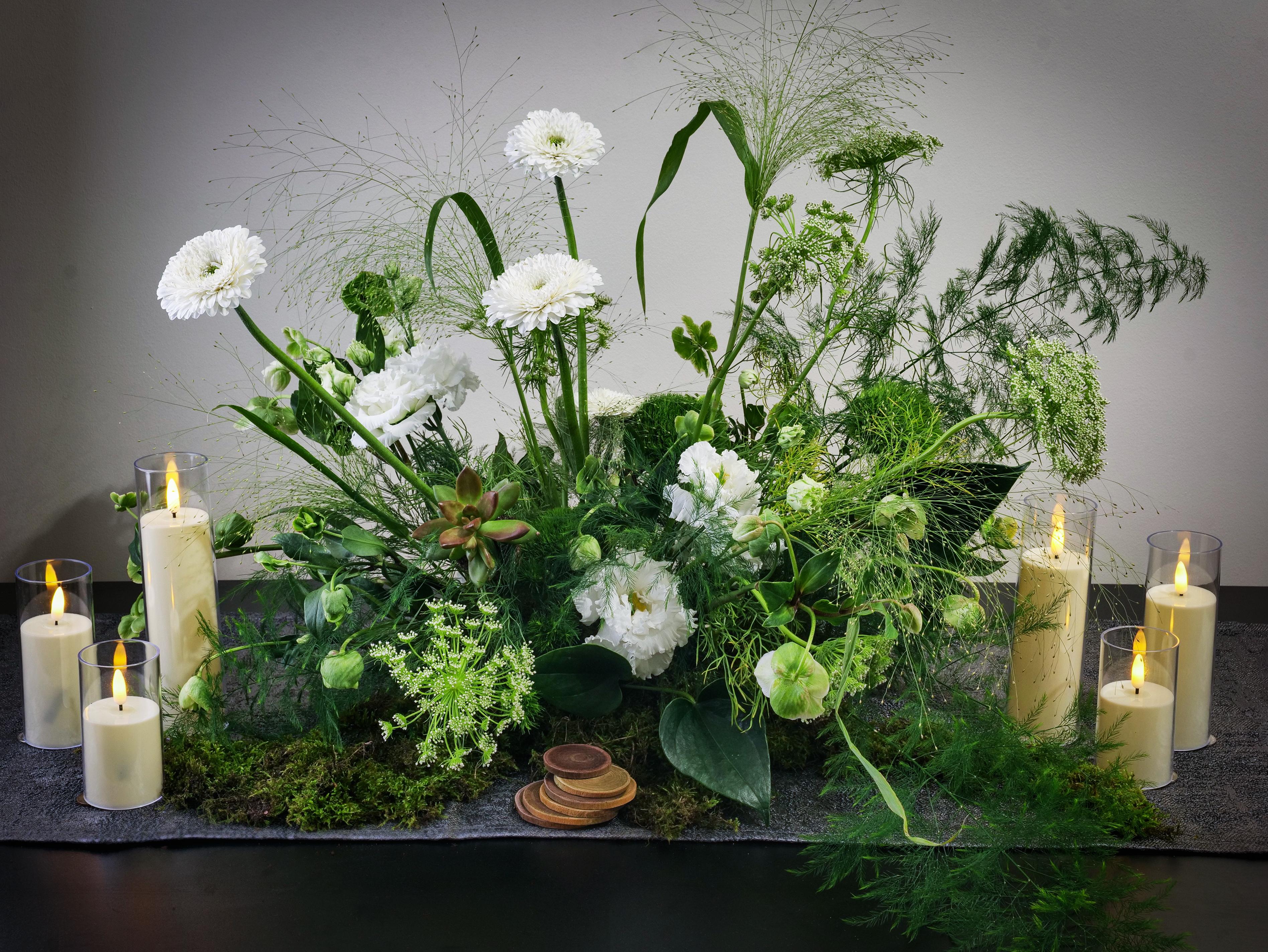 Композиция из трав листьев и мха. Островок лесной чащи на Вашем столе. Размер композиции 23х30 см, высотой 30 см. Можно дополнить электронными или восковыми свечами (аренда).